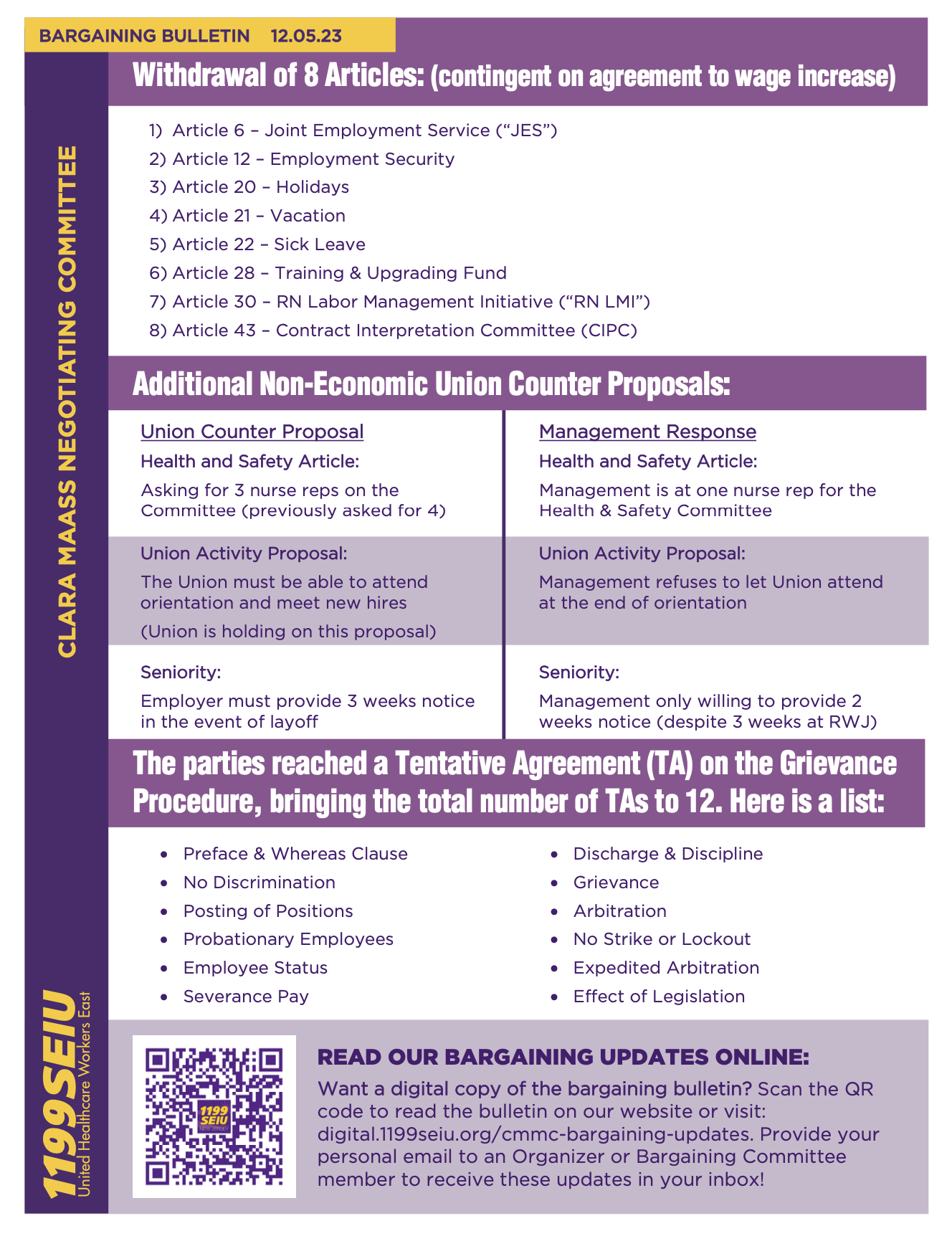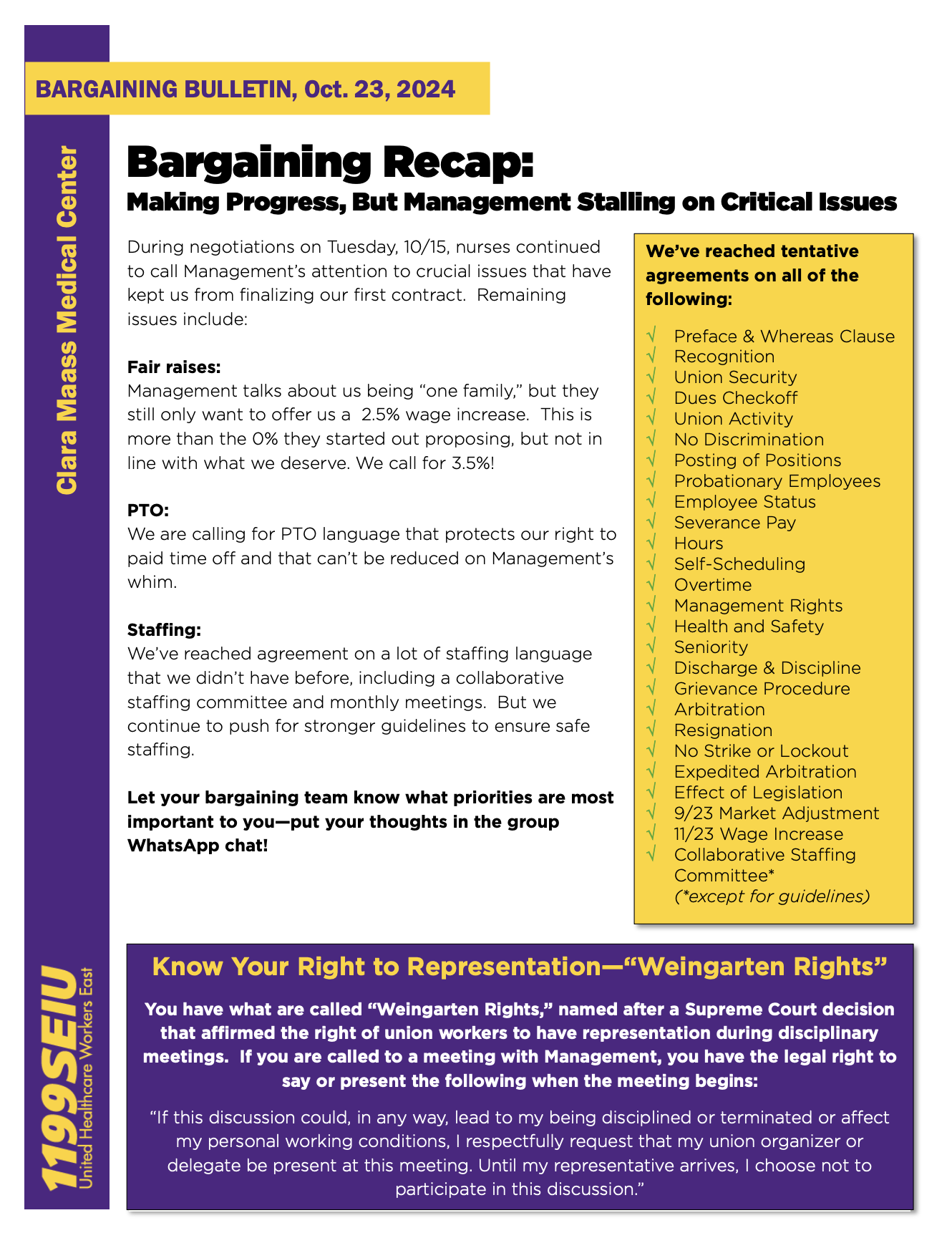 Bargaining Update: October 15, 2024 Bargaining Update: September 24, 2024 Bargaining Update: July 29, 2024 Bargaining Update: May 30, 2024 Bargaining Update: May 21, 2024 Bargaining Update: April 23, 2024 Bargaining Update: April 09, 2024 Bargaining Update: March 27, 2024 Bargaining Update: March 22, 2024 Bargaining Update: February 28, 2024 Bargaining Update: February 14, 2024 Bargaining Update: January 31, 2024 Bargaining Update: January 26, 2024 Bargaining Update: January 09, 2024 Bargaining Update: December 20, 2023 Bargaining Update: December 05, 2023 Bargaining Update: November 21, 2023 Bargaining Update: November 14, 2023 Bargaining Update: October 18, 2023 Bargaining Update: September 26, 2023 Bargaining Update: September 12, 2023 Bargaining Update: August 10, 2023 Bargaining Update: July 19, 2023
